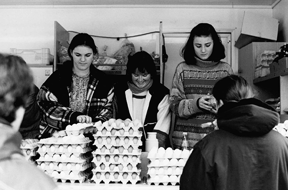 In dieser Zeit konzentriert sich das Geschäft auf die Aufzucht von Küken und ihren Verkauf an Legehennenbetriebe. Von diesen Kunden werden überschüssige Eier im Tauschgeschäft zurückgenommen und auf dem Wochenmarkt verkauft.